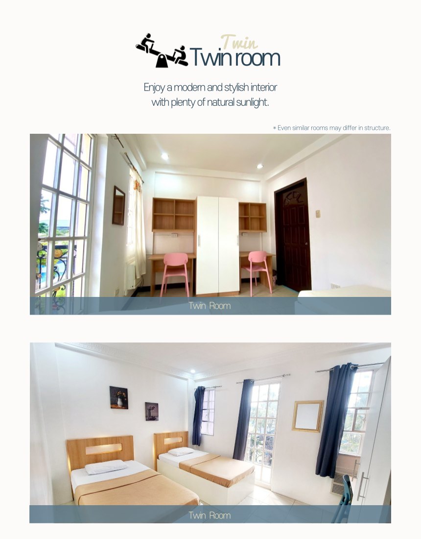 Ký túc xá tiện nghi: phòng đơn, đôi, bốn người, có đầy đủ điều hòa, bàn học và wifi tốc độ cao.